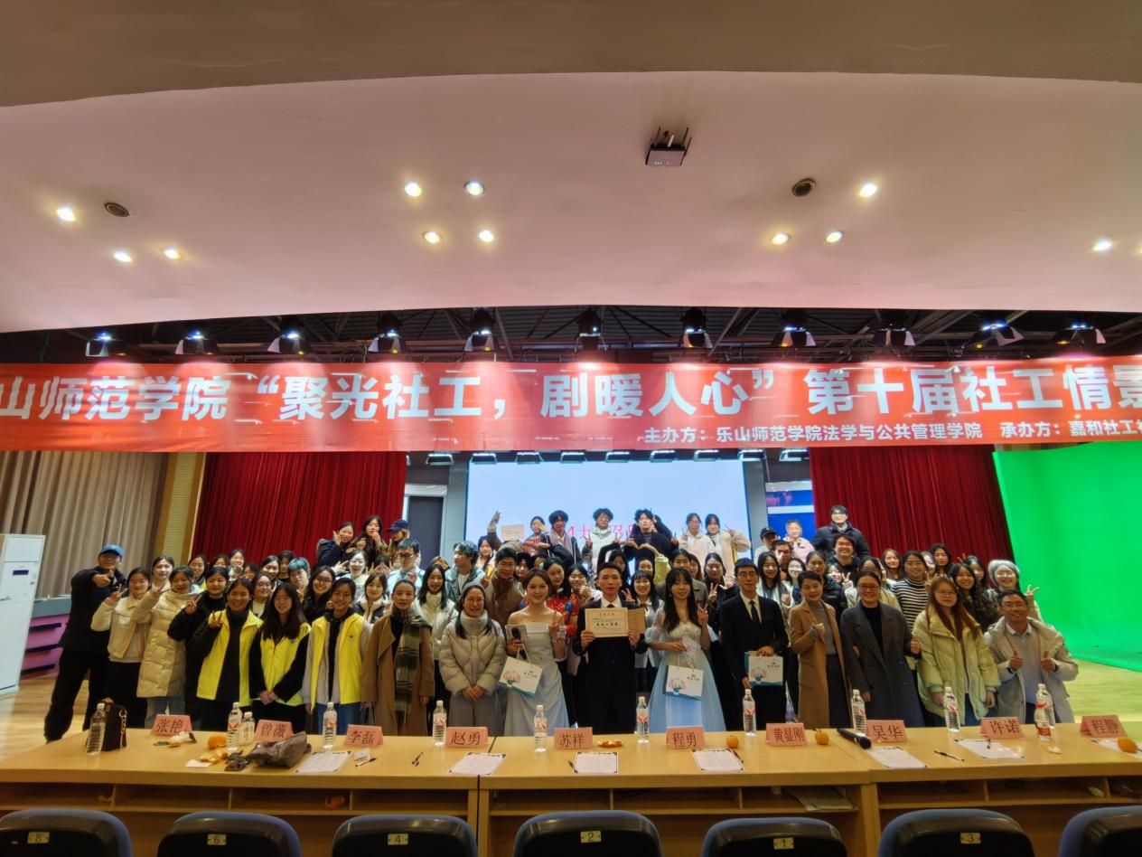 晚,“聚光社工,剧暖人心”乐山师范学院第十届社工情景剧大赛在旷怡楼学术报告厅成功上演,以生动直观的艺术形式展现了社会工作专业价值与学子风采,为充实的一天画上了圆满的句号。