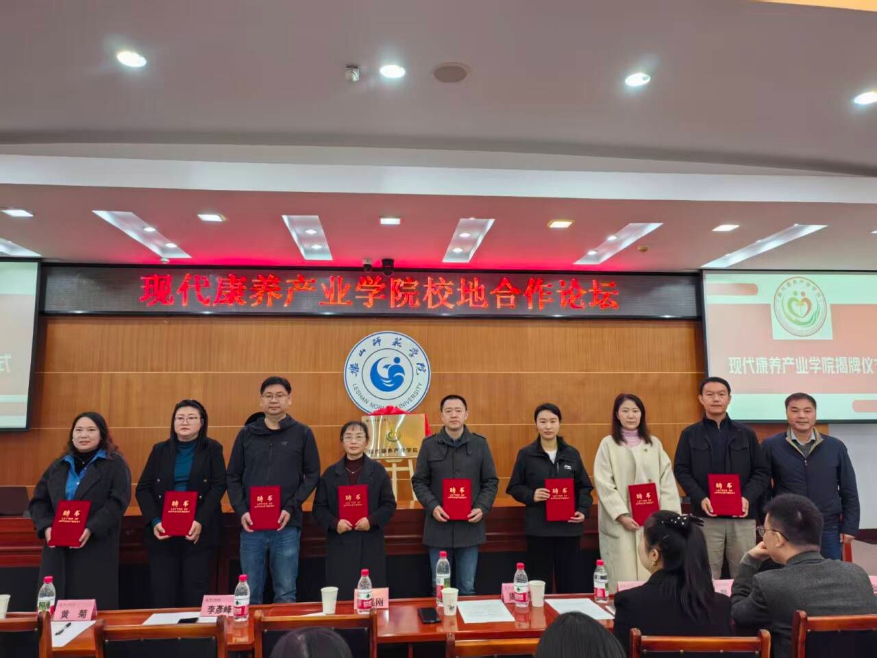 在全体与会人员的共同见证下,周勇与四川川投盛榉养老服务有限公司黄菊院长一同为“现代康养产业学院”揭牌,标志着我校在产教融合、服务地方的道路上迈出了更为坚实的一步,一个集人才培养、科学研究、社会服务于一体的创新平台扬帆起航。紧接着,大会举行了隆重的行业导师聘任仪式。周勇向8位来自康养产业一线的资深专家和管理者颁发了行业导师聘书。这批行业导师的加入,将为现代康养产业学院的学生带来最前沿的行业动态、最真实的实践案例和最宝贵的职场经验,有效打通理论教学与行业实践的“最后一公里”,为学生构筑起通往职业生涯的坚实桥梁。仪式结束后,全体领导、行业导师及参会教师在沫若图书馆前合影留念,定格下这一历史性的瞬间。
