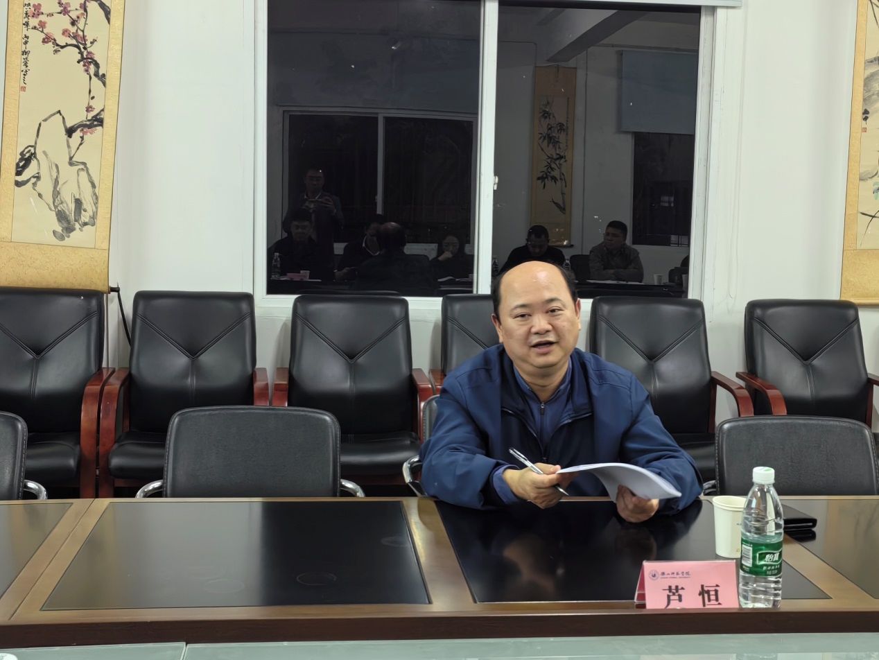 会议伊始,苏祥院长对芦恒教授的到来表示诚挚感谢与热烈欢迎,并简要介绍了与会人员。随后,芦恒教授结合学院前期准备的《申请博士硕士专业学位授权点简况表》,从人才培养成效、师资队伍与教学团队结构、跨专业课程体系构建、实践教学基地建设以及社会服务模式创新等多个核心维度,对申报材料进行了系统梳理与深入剖析,提出了具有针对性的优化建议。