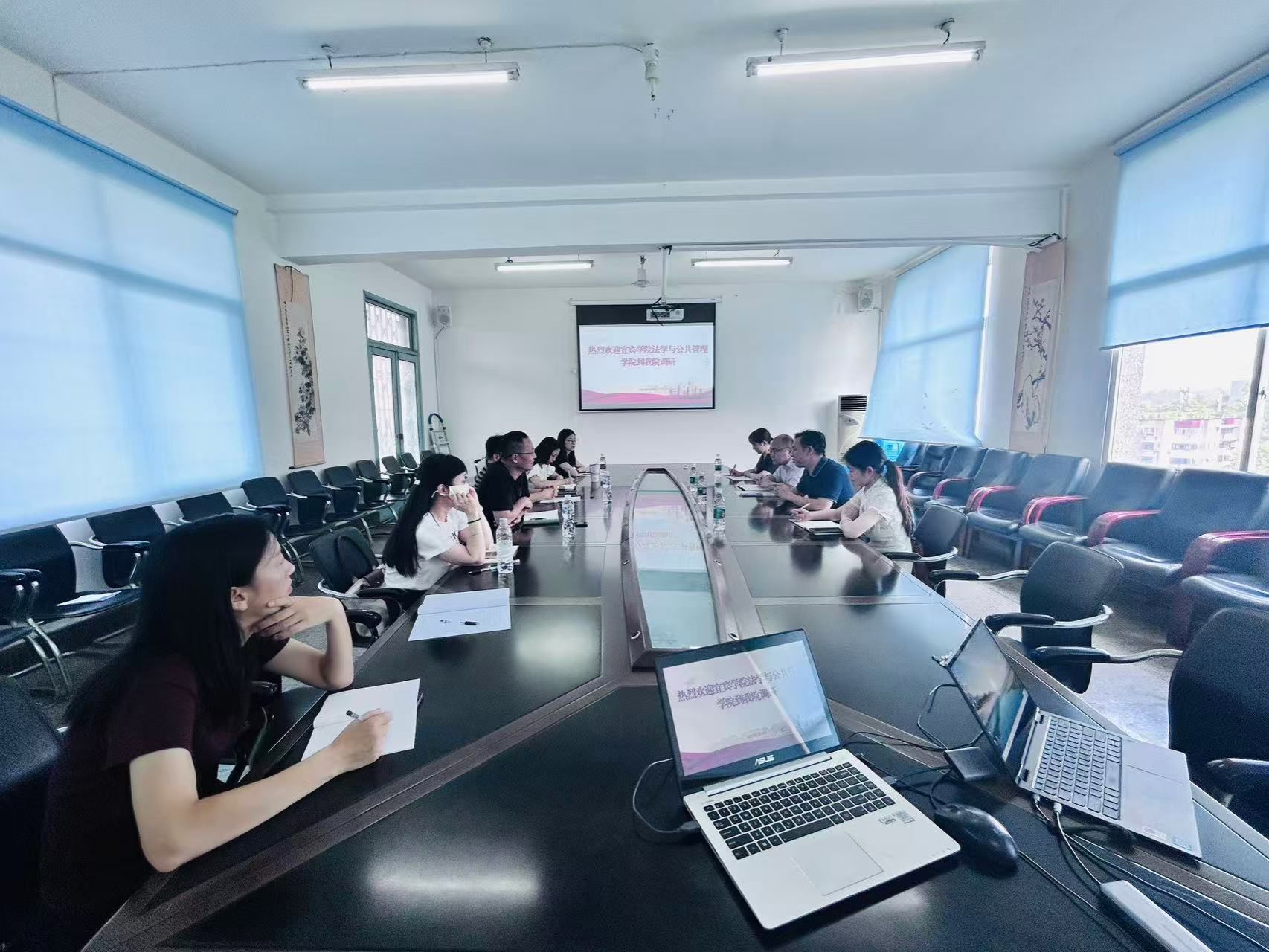 双方首先就硕士点申报过程中面临的困难进行了深入交流,宜宾学院法管学院介绍了本院在学科建设方面取得的阶段性成果,我院则结合自身经验,重点分享了在学科特色凝练、师资队伍整合及社会服务成果积累等方面的做法。随后,围绕当前国内高校行政管理专业调整的趋势,双方就专业转型与特色化发展路径进行了深入探讨,认为应积极贯彻“交叉学科融合”“服务地方发展”等理念,强化政校企协同合作,提升专业核心竞争力。最后,在毕业生就业质量提升方面,双方围绕课程体系优化、实践教学基地共建以及就业指导服务机制等方面展开了富有成效的交流。